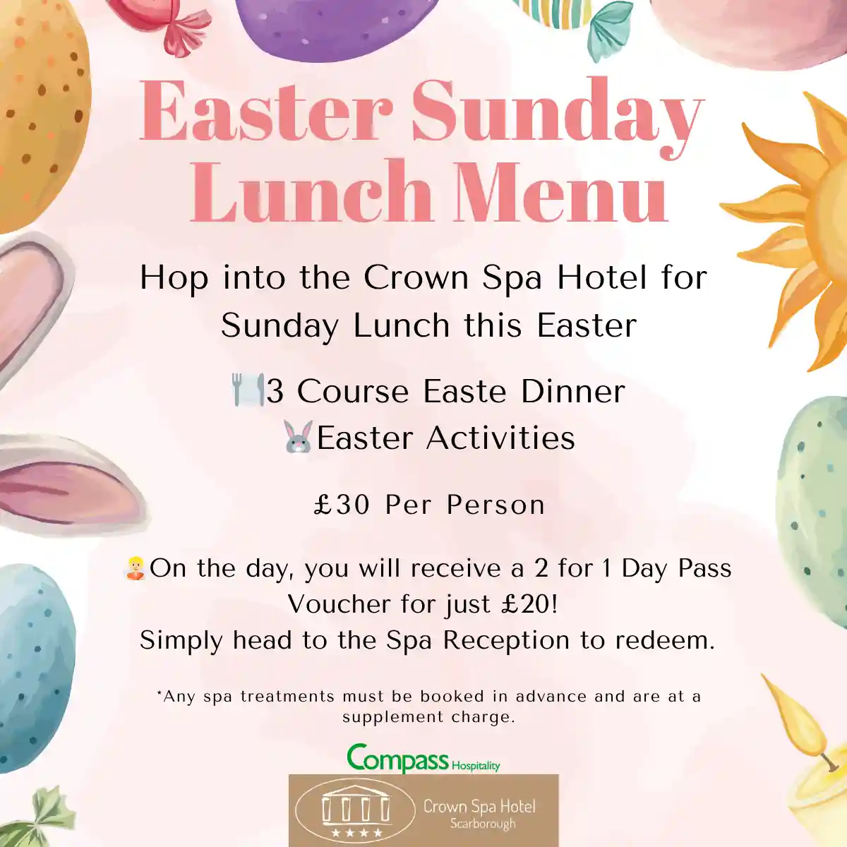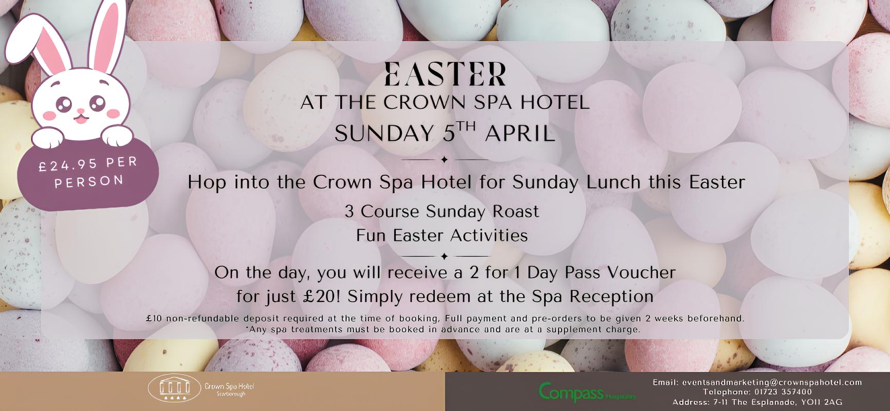Hop into the Crown Spa Hotel this Easter for Sunday Lunch and fun activities for all the family!