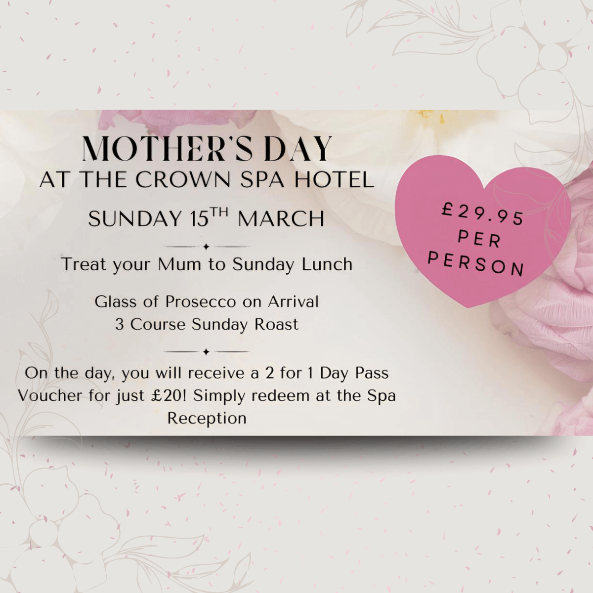 🌸 Celebrate Mother’s Day at the Crown Spa Hotel 🌸